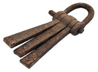 The precise purpose of the Lewis is to allow the hoisting chain of the derrick, or crane, to raise the stone and then lower it into its exact, final position in the wall, which could not be affected if chains or ropes passed underneath the stone. With the stone in position, the shackle bolt is removed, thus allowing the spacing piece to be withdrawn followed by the two wedges. Stone blocks would then be lifted with ropes and pulleys onto awaiting horse-drawn wagons which would then transport the stone to its designated location, usually barges sailing from Beer Beach.