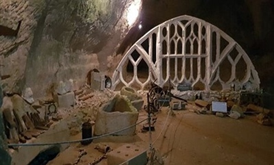 In parts of the cave large slopes from floor to ceiling are piled with loose rocks and stones these were created from the waste from excavating the modern quarry.