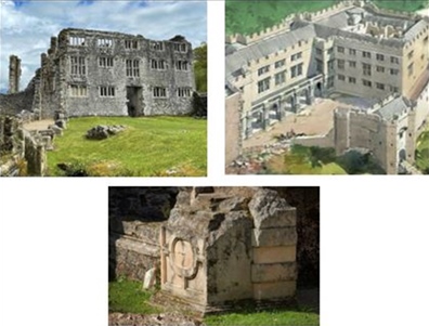 Further research revealed that Beer stone was also used for arches and pillar facing in Berry Pomeroy castle. Although the arches are now long gone, the pillar bases and a twin seat in the still remain.