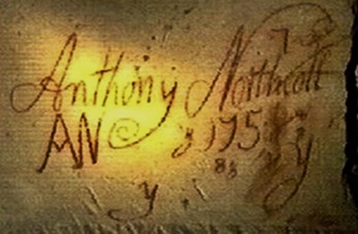 The inscription below consists of a name: Anthony Northcott, a date: 1758, and a few other cryptic symbols. Under the name is what looks like the initials AN – where the “A” is actually a stylized representation of the Masonic “square and compasses” symbol. This stone and others like it bearing his name tell us that he was an educated man by the way he wrote his name.
