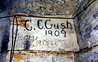 As you tour the caves one cannot help but noticed the name C. C, Gush 1909 in large letters on one of the walls. A mark certainly placed not to be missed or ignored.