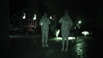 Walking round and getting their bearings an evp of 16a raspy whisper calling out “help me” was captured on one of the camcorders.