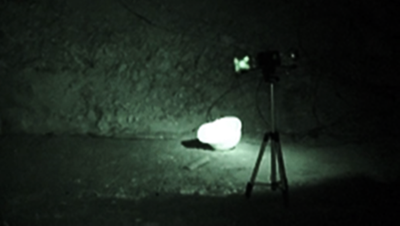 On the lower level beyond the Wagon Road Luke placed a hard hat in front of the rubble as a trigger object, with a camera locked on to it: the idea being should it move, it would be recorded or heard but it remained stationary. Yet this simple act seemed a poignant acknowledgement that lives in these dark caves had been lost.